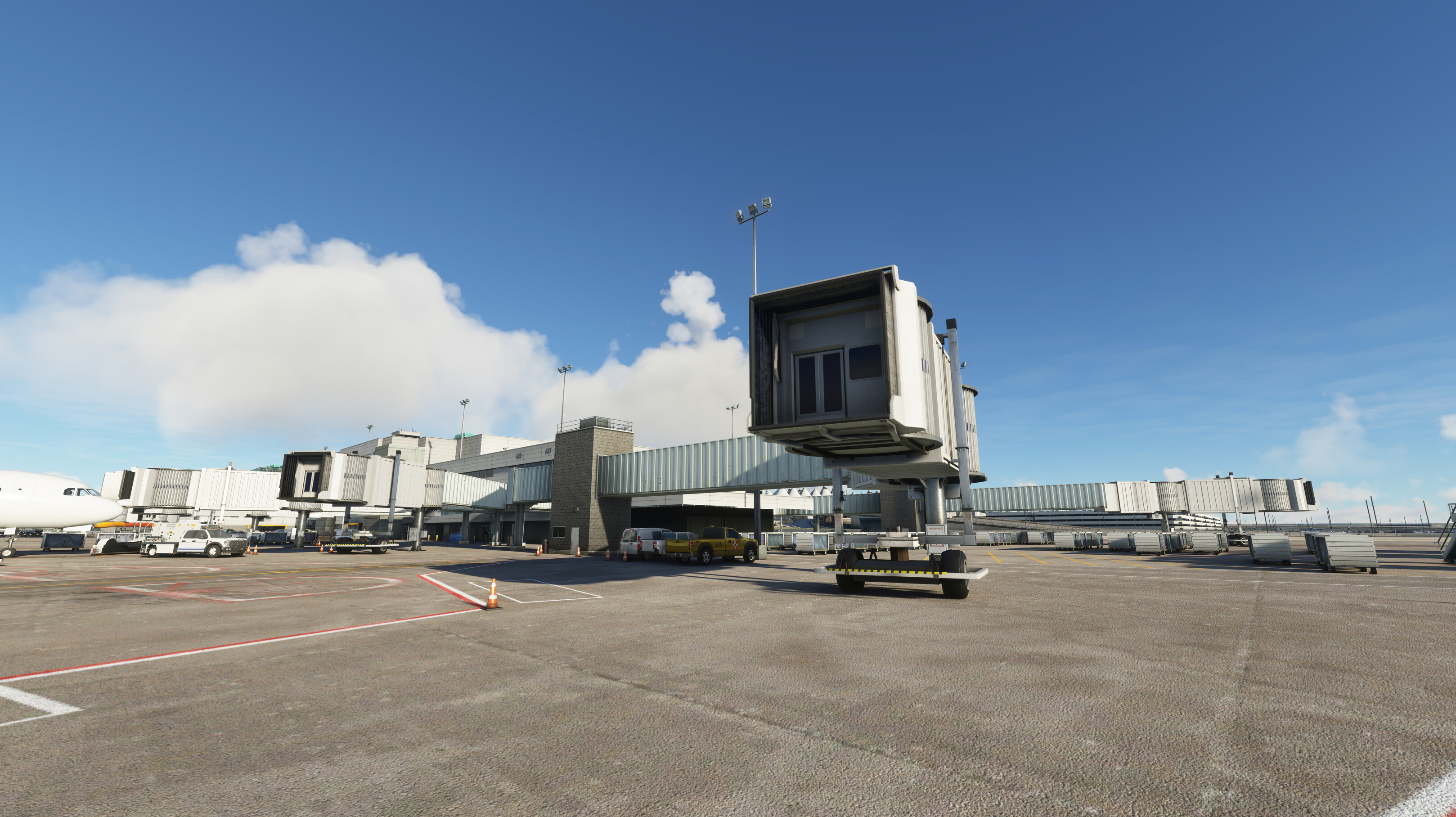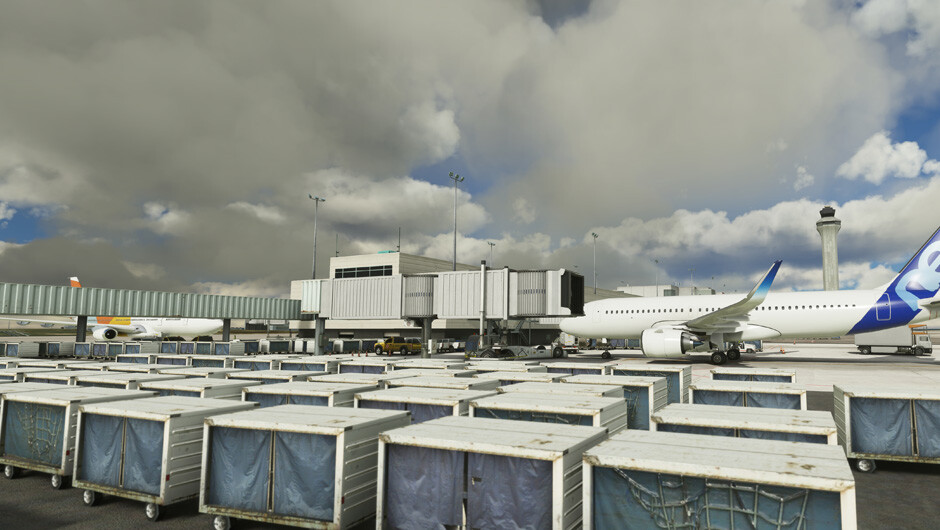 • An immense amount of new clutter around gates, more than twice as much as P3D/FSX